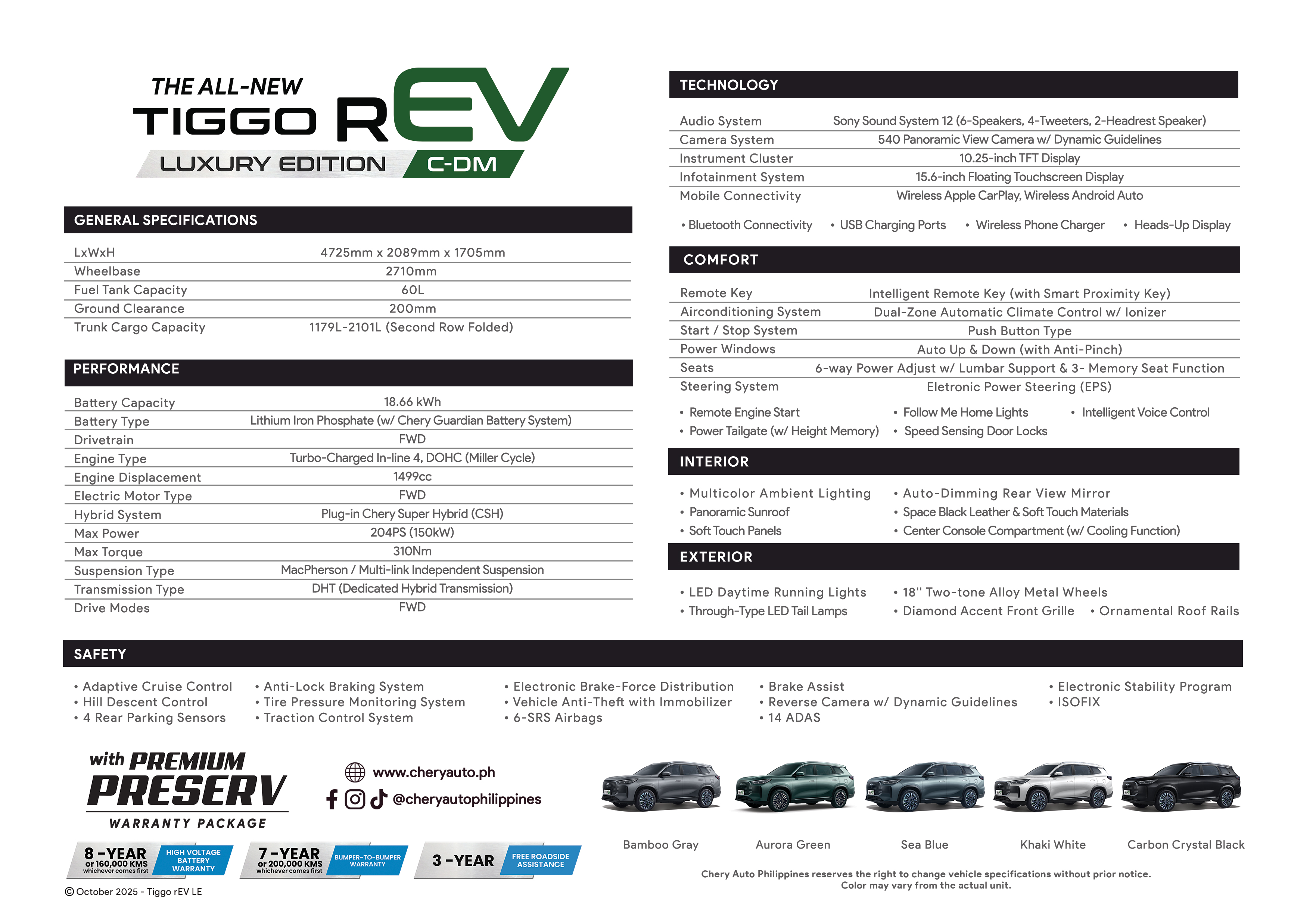 | Combined Range | 1,400 kilometers (EV + Hybrid) |